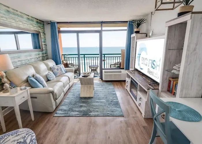 The beachfront 47 m² New Direct 1Br Oceanfront Sandcastle South, Pools! Myrtle Beach apartment is located nearly a 10-minute drive from the Myrtle Beach Boardwalk and Promenade and offers a private pool along with a patio. The apartment lies 2.7 km from the Second Avenue Pier.